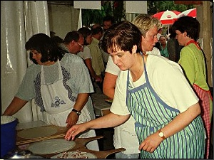 Die Helfer des Mandolinenvereins hatten alle Hände voll zu tun. Der Rahmkuchen aus den Holzofen ging weg wie warme Semmeln. Der Zuspruch war so groß, dass für den letzten Festtag nachgeordert werden musste.
