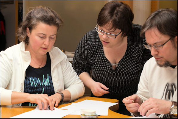 Die richtige Schleiftechnik zeigte uns an diesem Abend Elena Kisseljow. Und wir staunten nicht schlecht: Denn zum Schleifen wird nicht etwa feines Schleifpapier verwendet sondern ganz normales weißes Druckerpapier! Und tatsächlich klingen die bearbeiteten Plektren erheblich besser und weicher als zuvor.