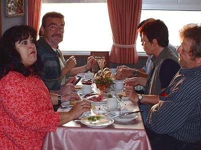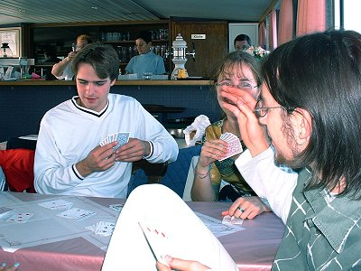 An Bord gab es zuerst einmal ein ausgiebiges Frühstück. So eine Flussfahrt macht doch ganz schön hungrig. Danach wurde einige Stunden „Mau-Mau“ gespielt, um sich die Zeit zu vertreiben.