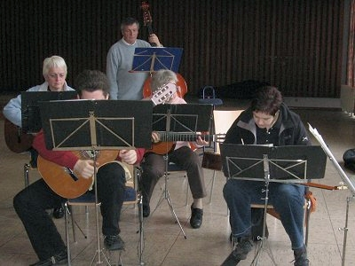 Wie vor jedem „Konzert in der Kirche“ waren die Spieler vom Mandolinenverein Auenheim auch in diesem Jahr ein Wochenende lang im „Trainingslager“. Obwohl der Evangelische Kirchenchor Rheinbischofsheim einen Teil des Konzerts gestaltet, hatte das Orchester einen recht straffen Probenplan. Die Musikstücke haben es zum Teil auch ganz schön in sich. Um 9.30 Uhr, also fast noch zu „nachtschlafender Zeit“, begann das ZEA am Samstag mit der Probe der „Suite Nr. I“ von Konrad Wölki. Nach kurzem Stühlerücken und Stimmen ging es auch schon los.
