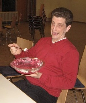 So nach und nach trafen dann die restlichen Spieler ein und füllten auch die Küche mit Verpflegung für die nächsten eineinhalb Tage. Denn wer viel arbeitet muss auch vernünftig essen und trinken. Nach zwei Stunden Orchesterprobe gabs zum Mittagessen wie in jedem Jahr Erwins „Schäufele“ und als Dessert eine Beerenmischung mit Sahne und Tiramisu.