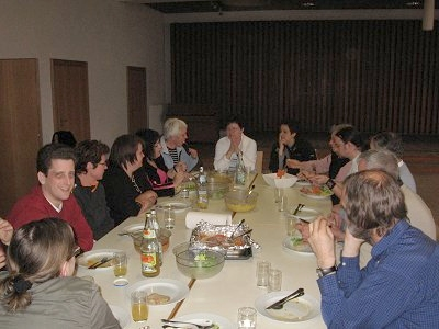 So gegen 19 Uhr kam dann der Pizza-Service mit unserem Abendessen. Leider konnten wir danach immer noch nicht zum „gemütlichen Teil des Abends“ übergehen, sondern wir probten noch bis ca. 21 Uhr. Danach waren wir so müde, dass alle nach einem kurzen Umtrunk um 22 Uhr den Heimweg antraten. Schließlich war am Sonntagmorgen um 9.30 Uhr schon die nächste Probe anberaumt.