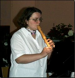 Beim Concertino Nr. 1 von Gustav Gunsenheimer tat sich Caroline Fritz ein zweites Mal als Solistin hervor; diesmal an der Altblockflöte. Begleitet wiederum vom gesamten Orchester, gab sie die schnellen Läufe des ersten wie die lang gezogenen Passagen des zweiten Satzes bravourös wieder. Einen besonderen Reiz besaß der Schlußsatz nicht nur aufgrund seiner musikalischen Frische, sondern auch der überraschenden Taktwechsel.