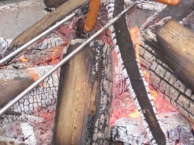 Bei der reichlichen Glut war der Speck ruck-zuck fertig. Und so grillte sich jeder eine Scheibe nach der anderen. Und um die Verdauung anzukurbeln, testeten wir die verschieden selbst hergestellten „Angesetzte“: Schlehenlikör von Erwin, Johannisbeer- und Nusslikör von Claudia.