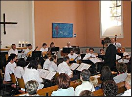 Nachdem sich die Solistin an der Glasharfe mit einer kleinen Zugabe verabschiedet hatte, fand das Mandolinenorchster aus Auenheim mit der stimmungsgeladenen Musik aus dem 1. Satz des "Divertimento Nr. 2" von W. A. Mozart einen würdigen Abschluss des Konzertes. Das Publikum war jedoch so begeistert, dass es die Akteure erst nach zwei Zugaben gehen ließ.
